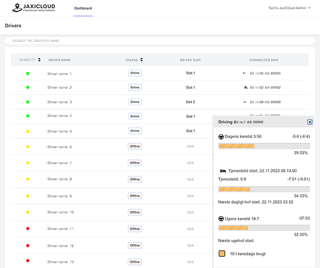 - Control card — allows law enforcement agencies to read driver violations and hardware failures.